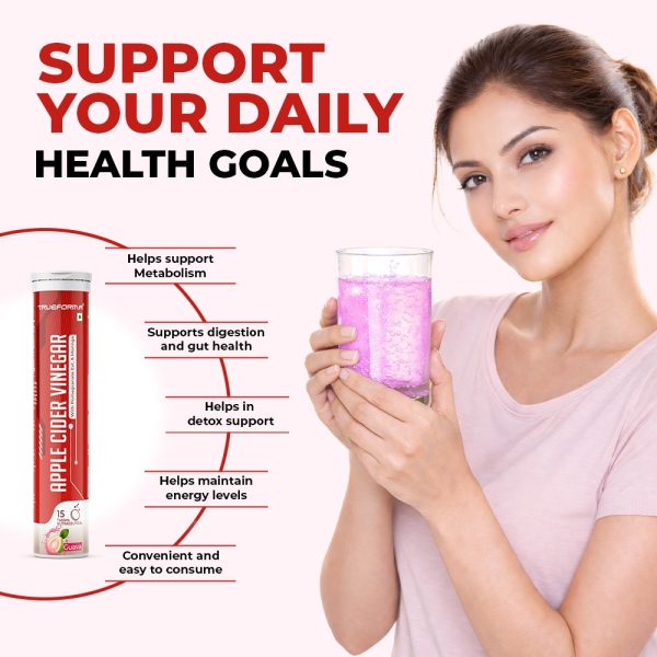 Trueforma® Apple Cider Vinegar Tablets are formulated with Apple Cider Vinegar (500 mg) along with Pomegranate Extract, Moringa Extract, Vitamin C, Vitamin B6, and Vitamin B12. Each tablet is designed to dissolve in water for convenient consumption.